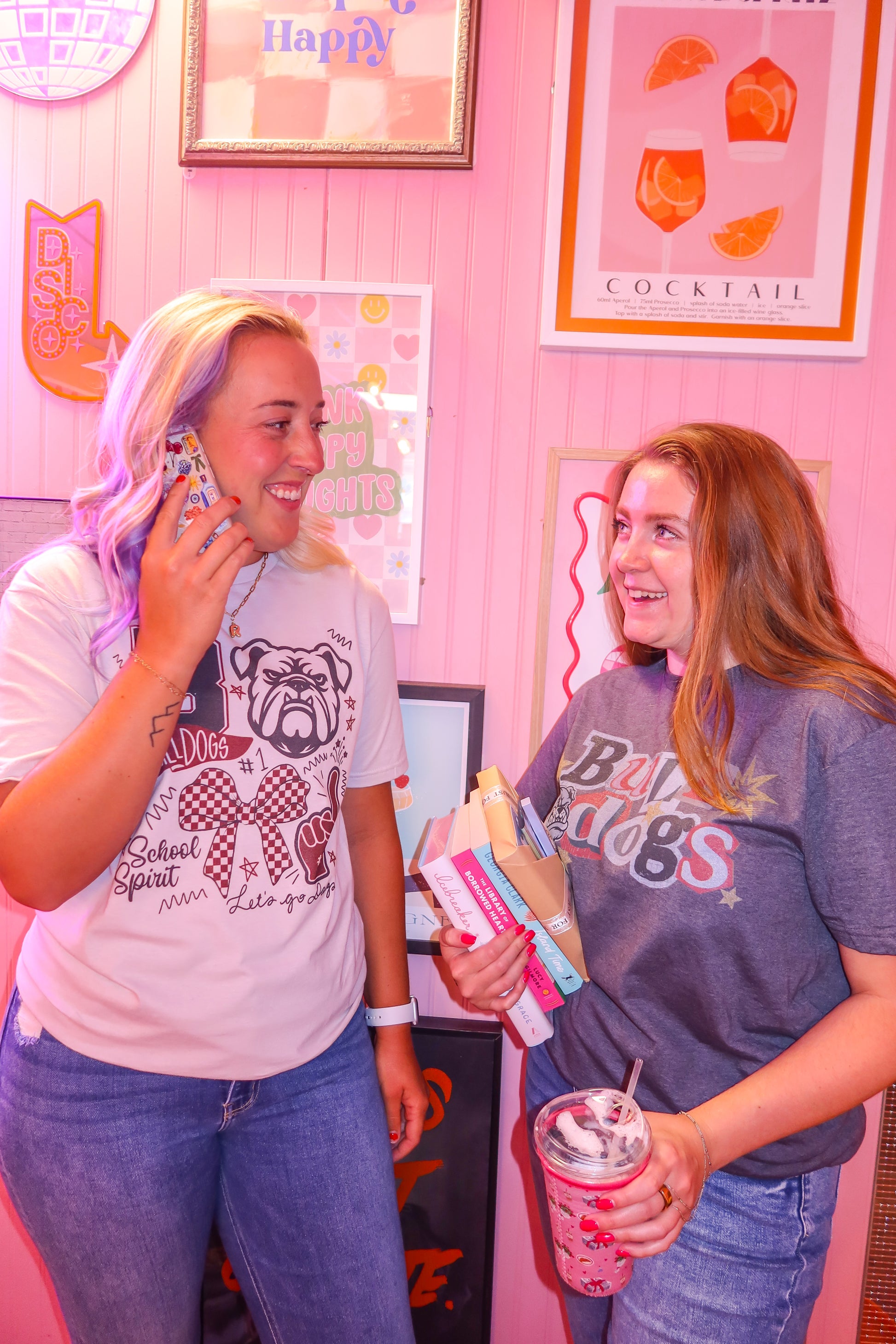 Show your hometown pride with this vintage-inspired Batavia Bulldogs tee. Featuring hand-drawn varsity lettering, a fierce bulldog graphic, foam finger, and checkered bow, it’s full of classic school spirit. Perfect for Friday night lights, pep rallies, or just repping your roots.