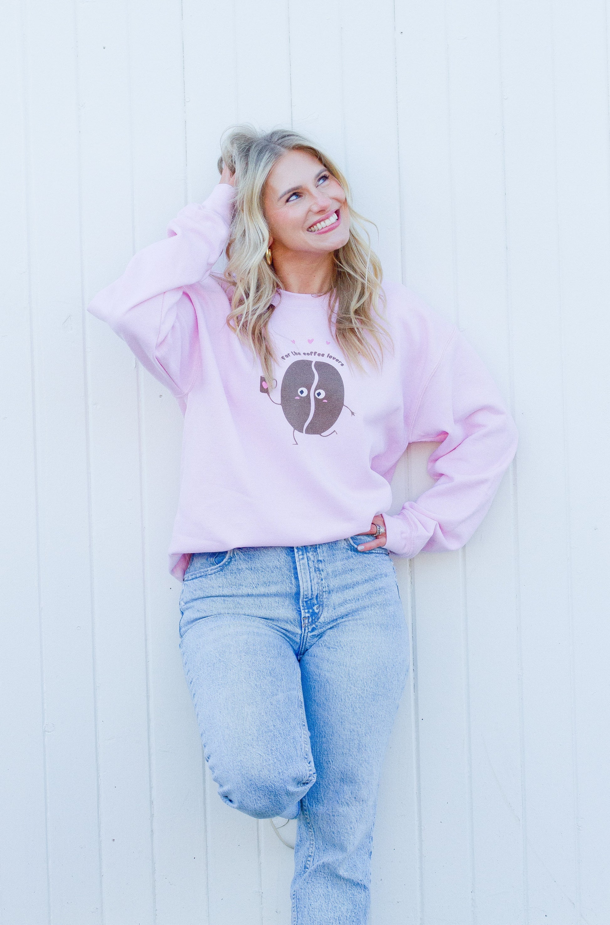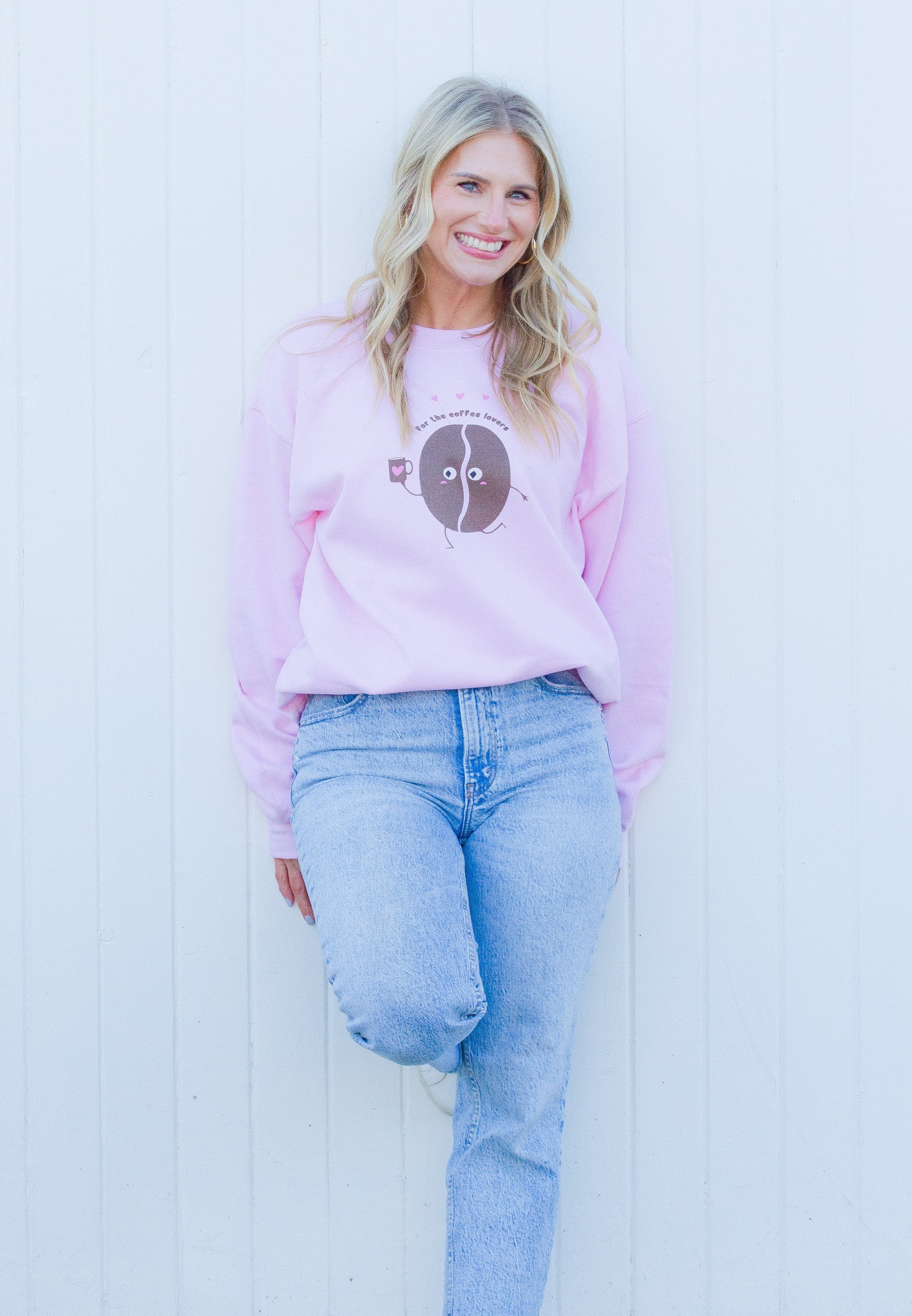 Seapeak original design! Indulge in bold, caffeinated style with our pink crewneck tee. This cute top features a playful coffee bean character, perfect for the adventurous coffee lover in you. Satisfy your caffeine cravings while staying stylish!