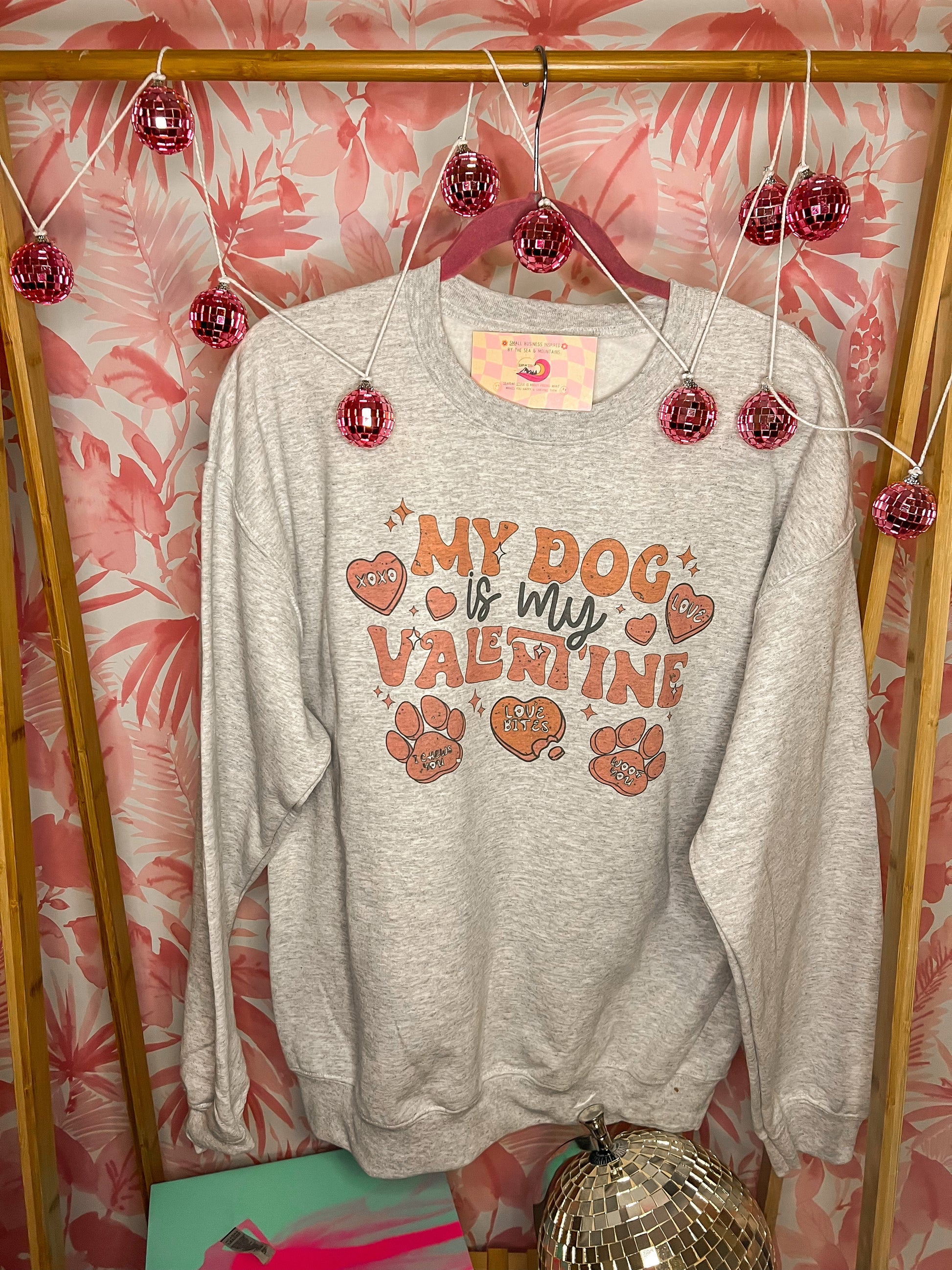 "Embrace your love for your furry friend with My Dog is my Valentine sweatshirt! In a sleek ash color, this soft sweatshirt is perfect for dog lovers!