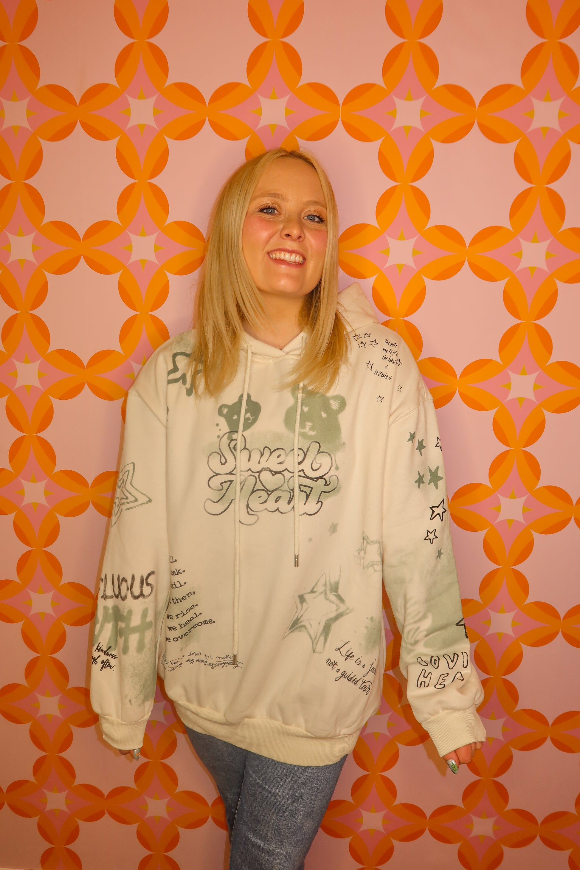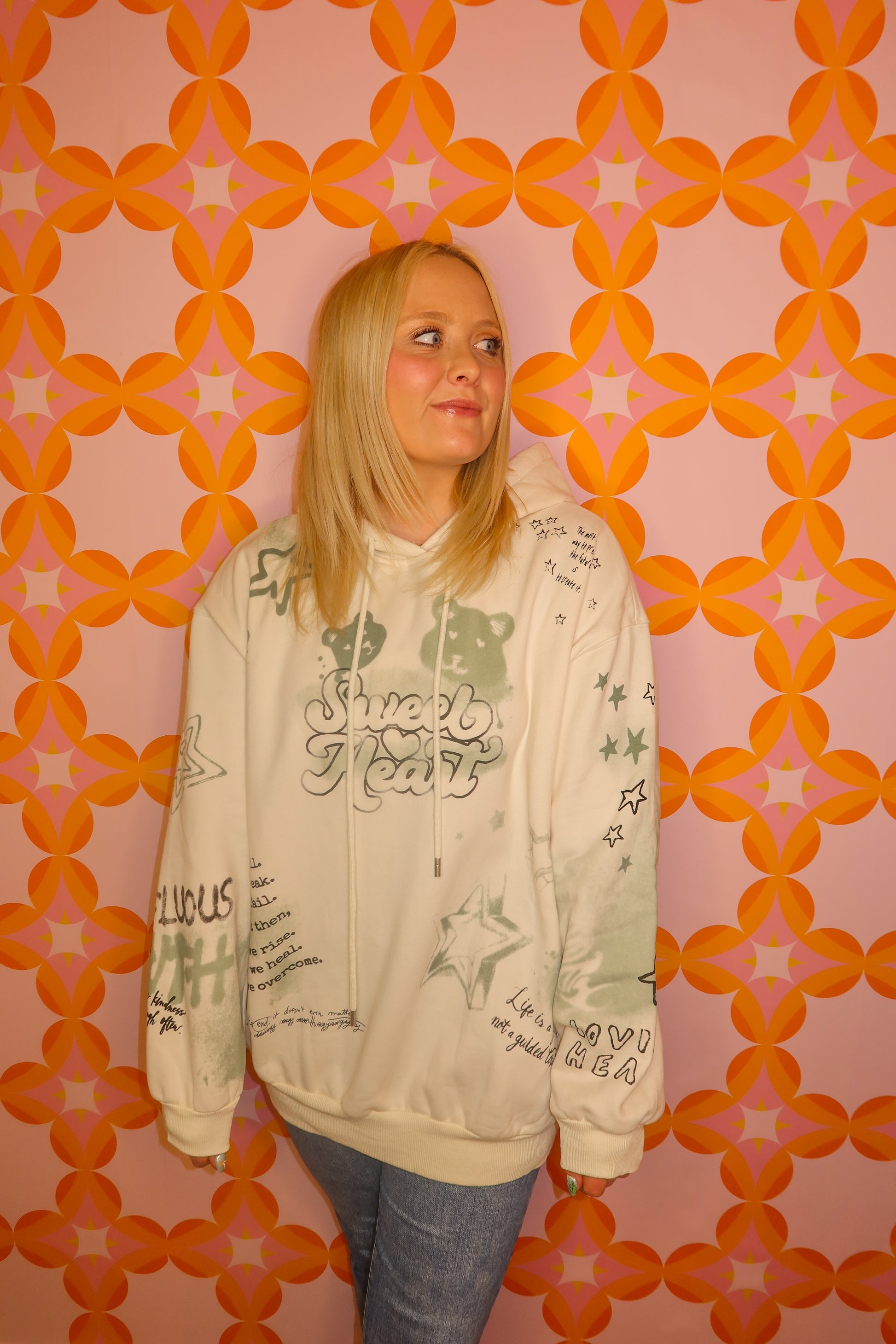 Express your playful side with the Sweetheart Hoodie, a cozy oversized sweatshirt bursting with personality. Featuring vibrant hand-drawn-style graphics, fun phrases, and a soft pastel palette, this hoodie is perfect for adding a whimsical touch to your casual wardrobe. Made for comfort and style, it’s your go-to piece for relaxed days and standout looks.