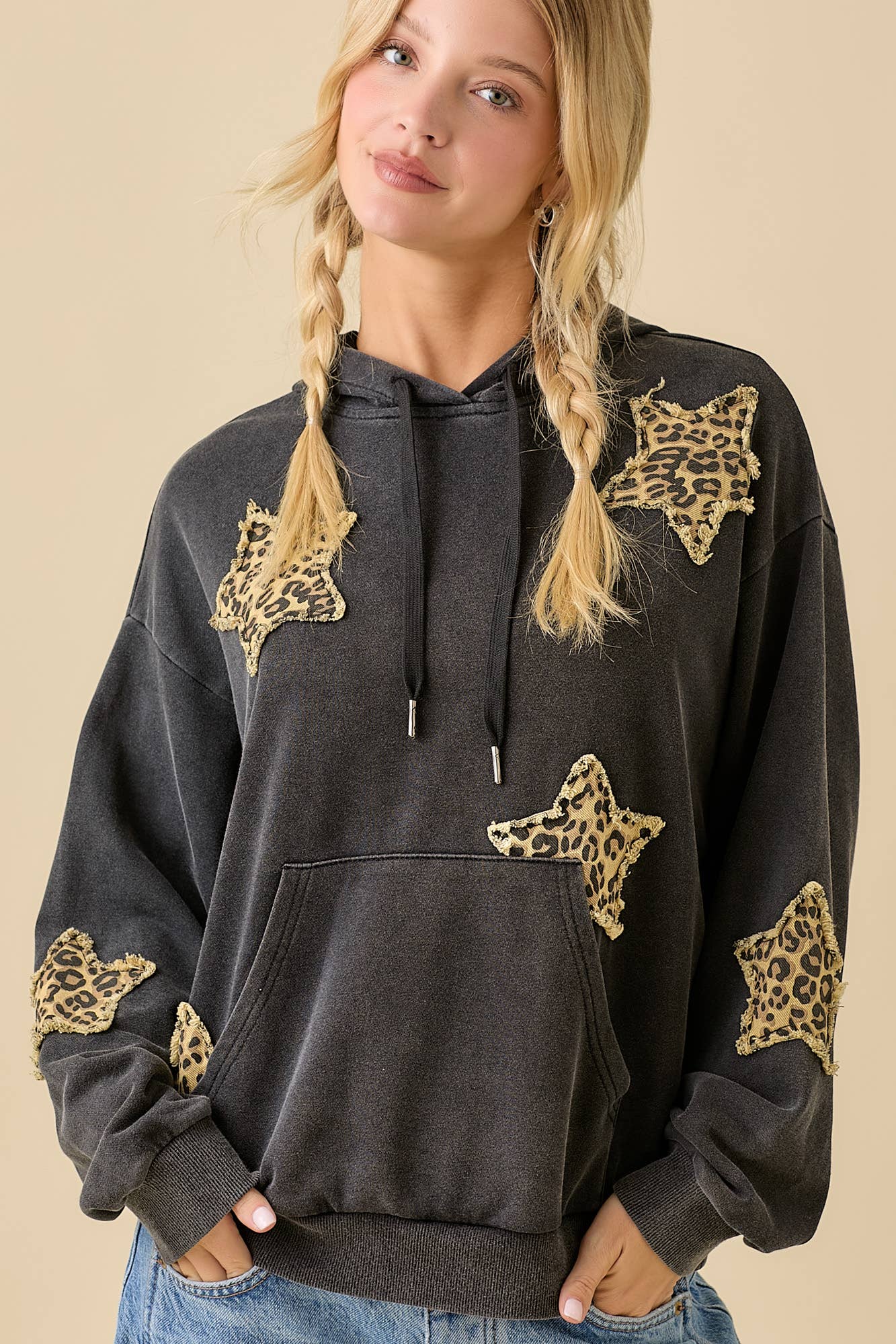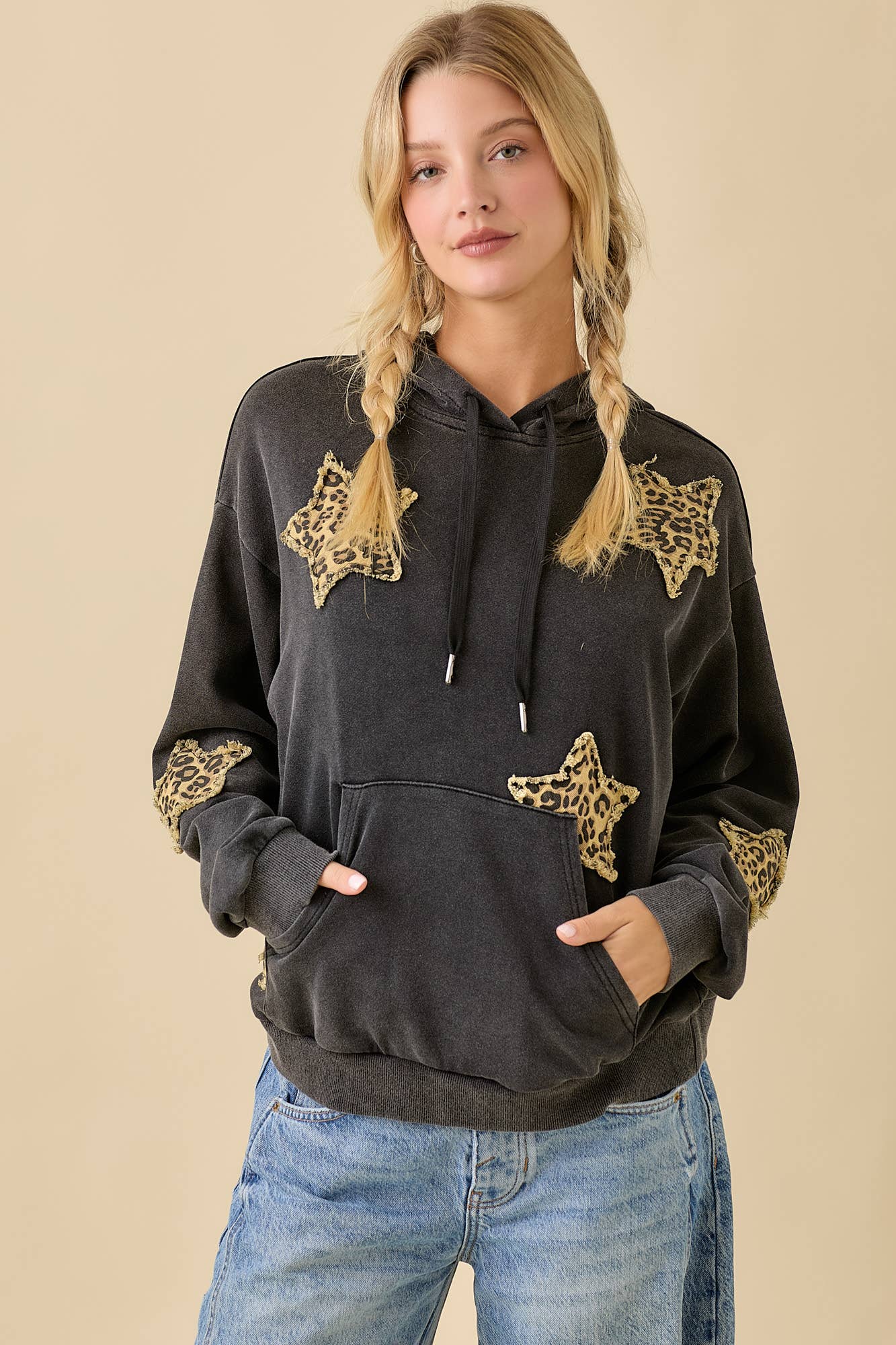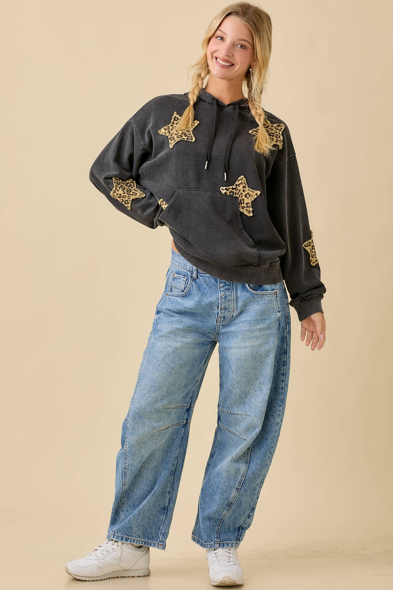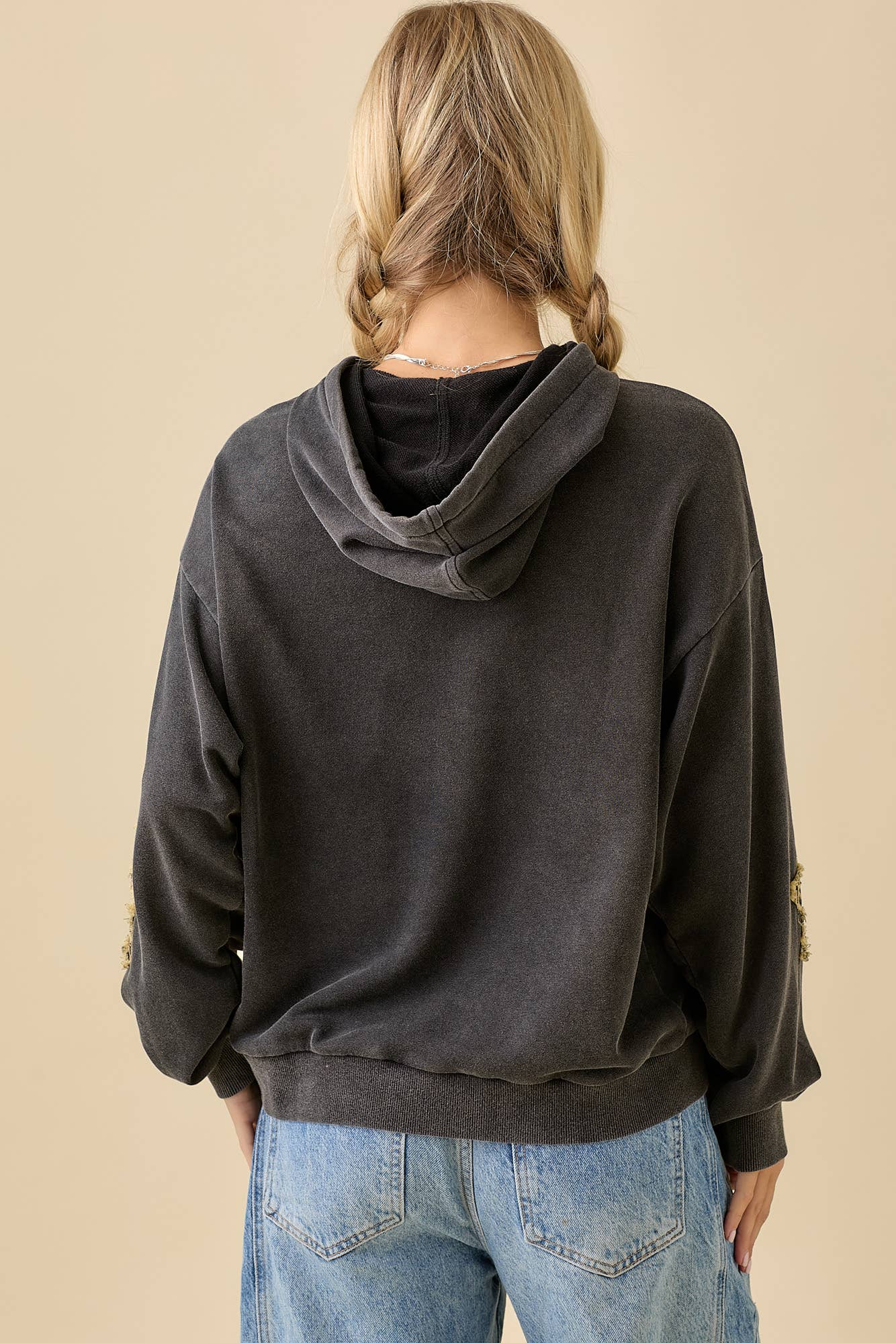 Mineral Wash Hoodie With Denim Star Patch 80%COTTON 20%POLYESTER CONT:97%COTTON 3%SPANDEX