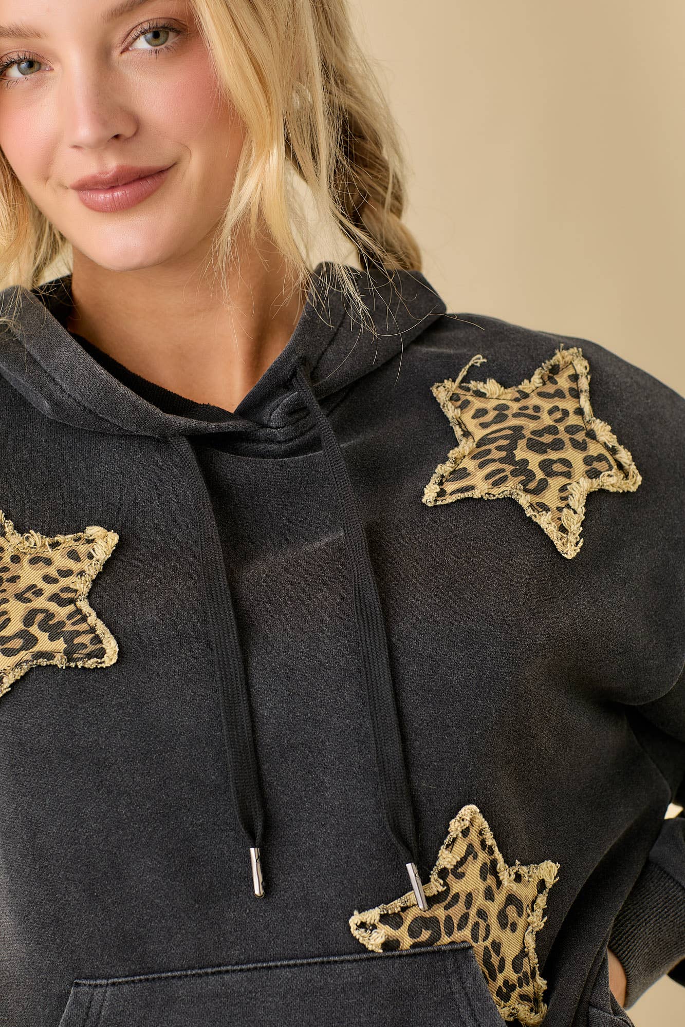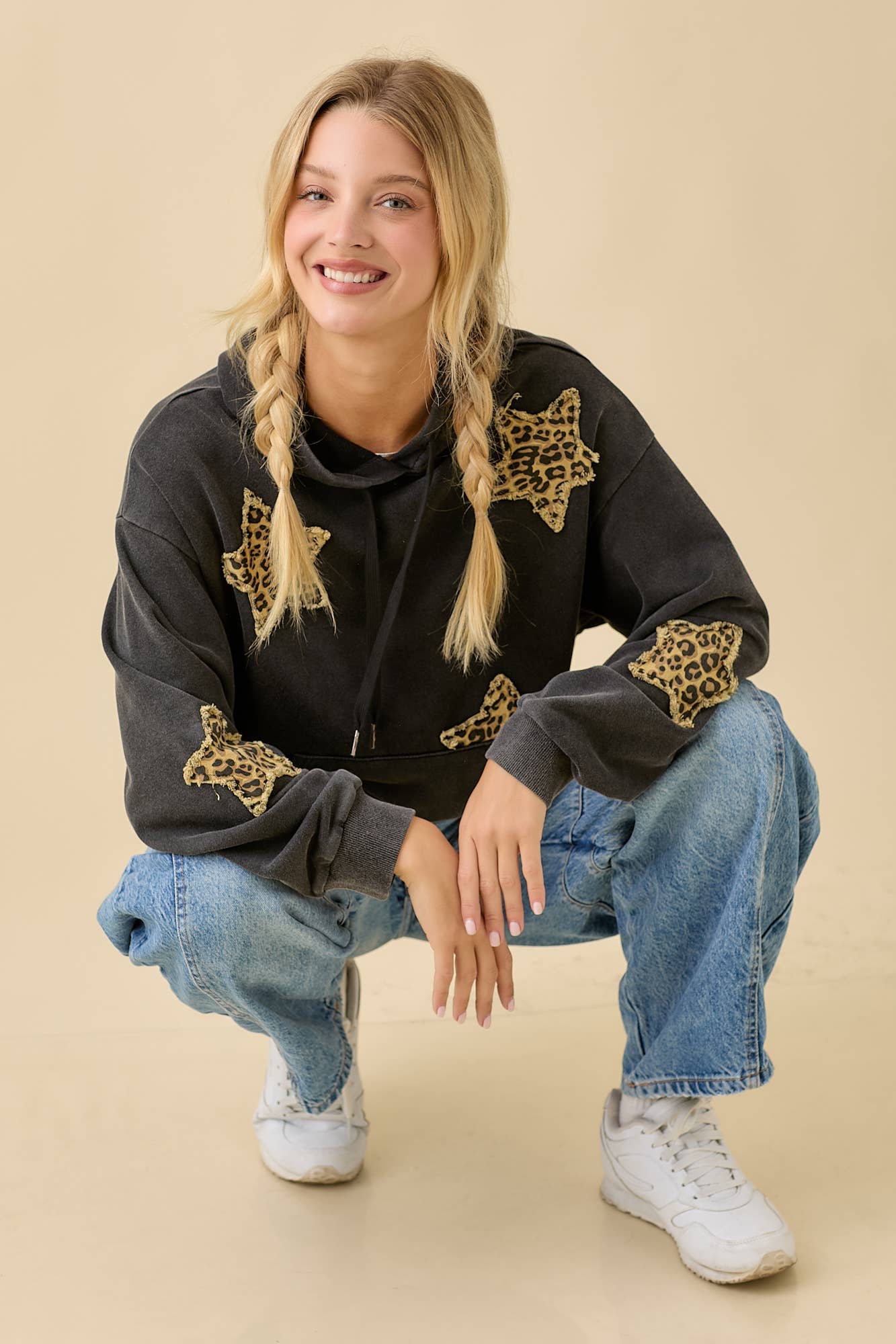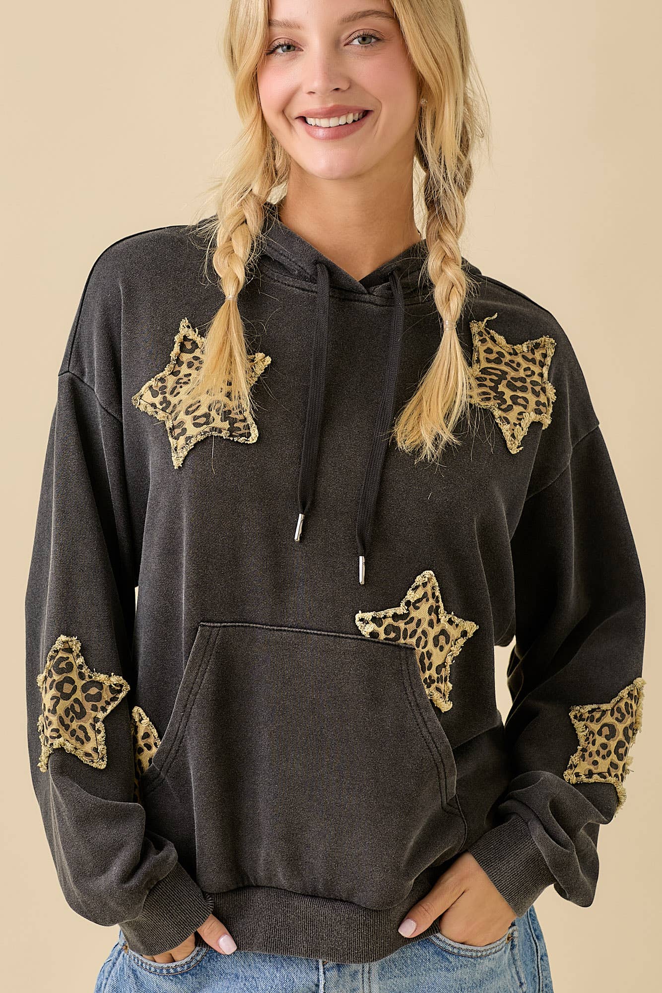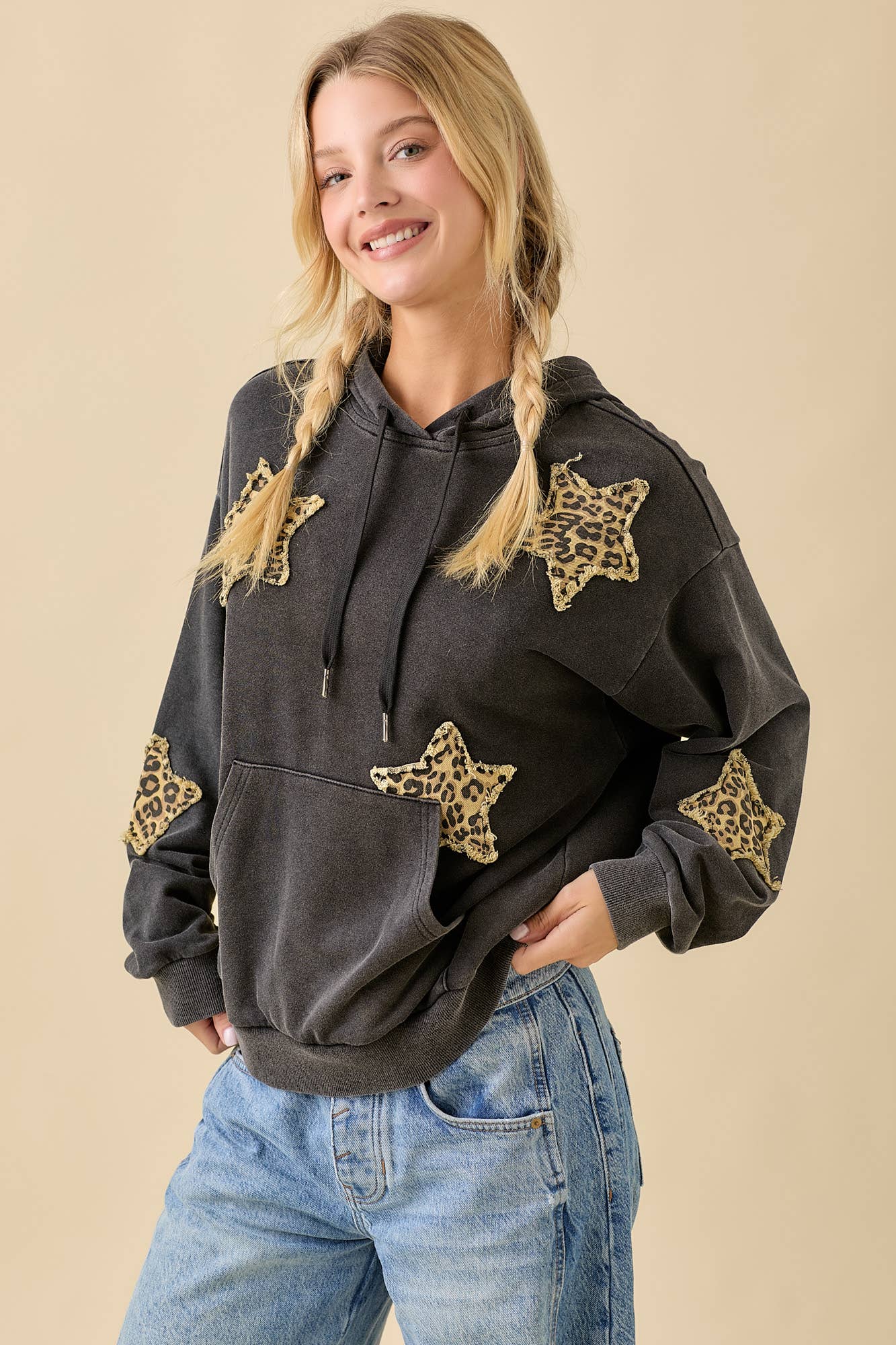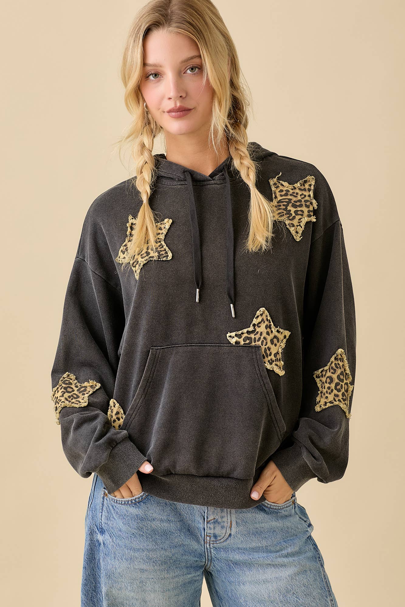 Mineral Wash Hoodie With Denim Star Patch 80%COTTON 20%POLYESTER CONT:97%COTTON 3%SPANDEX