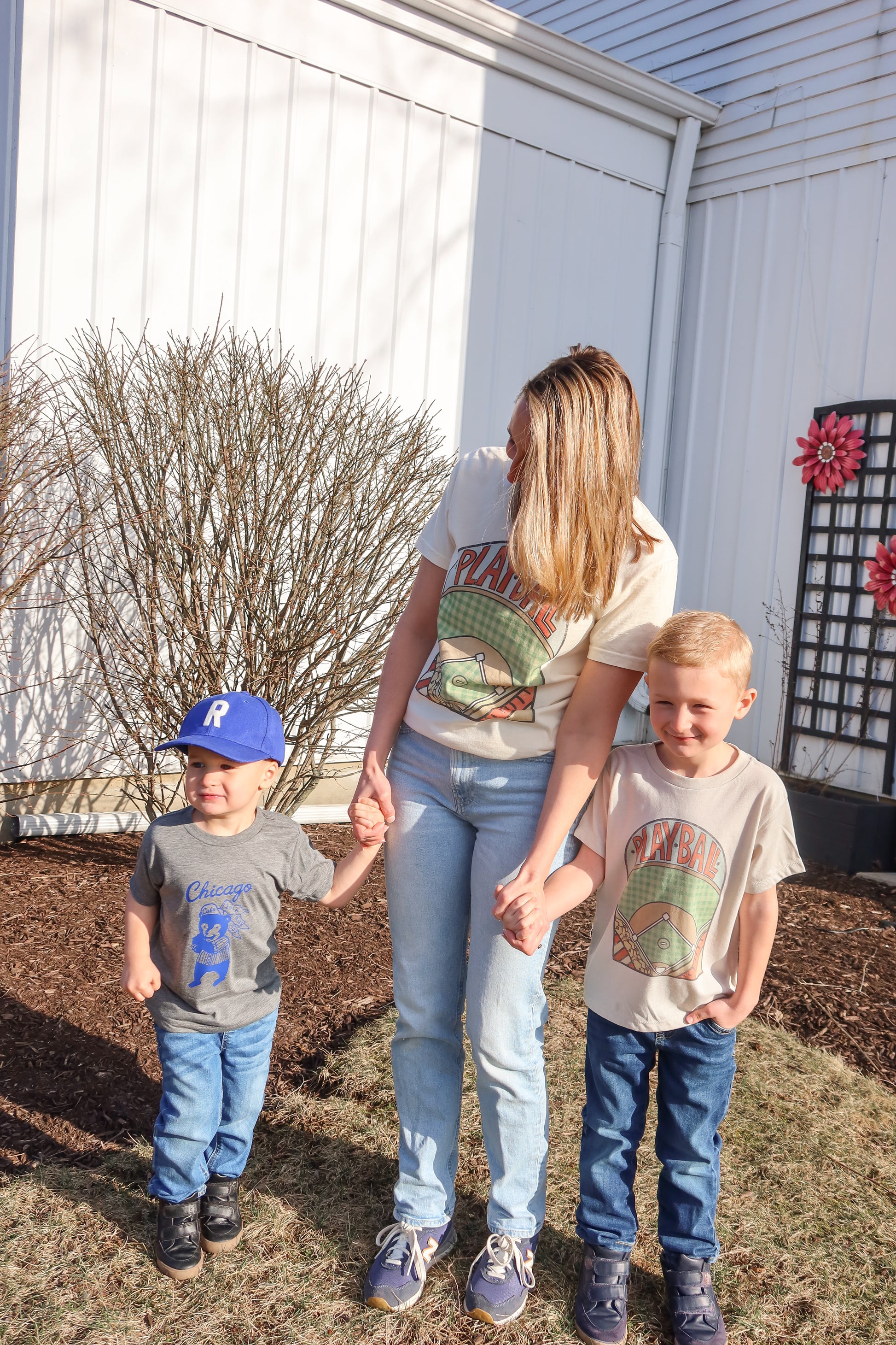 We’ve teamed up with Arlo.Hendrix Kids so your little slugger can match in the cutest way. Grab the coordinating kids’ version here and get ready to cheer on your favorite team in style—mama and mini edition!
